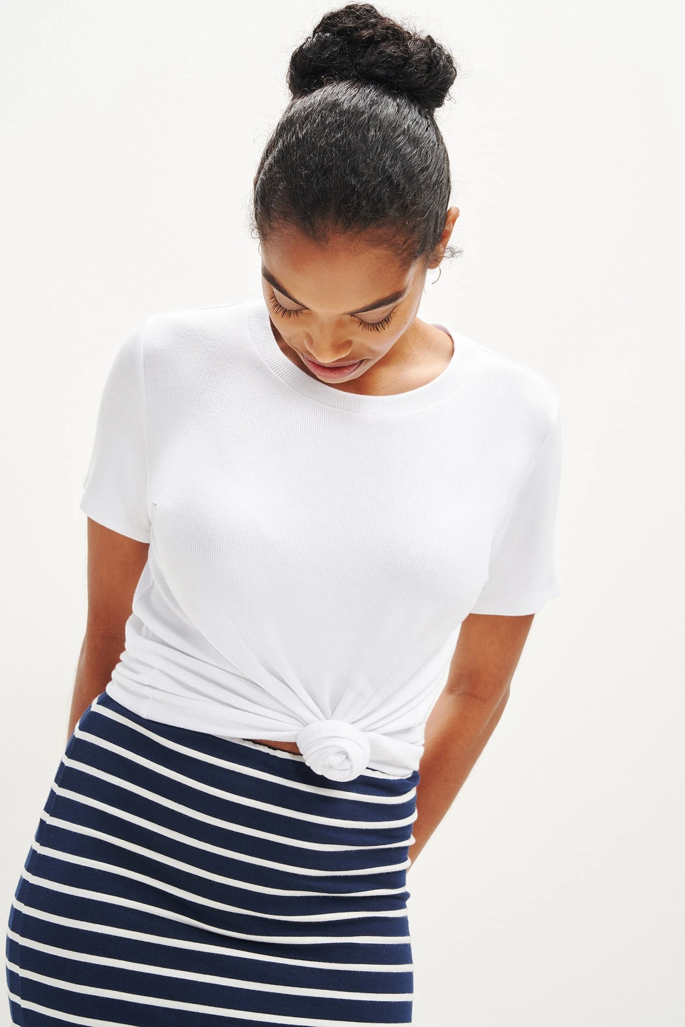 Short sleeve tee with an open neck and clingy, relaxed silhouette. Made in our silky-smooth Dream Rib, perfect for layering or wearing alone.