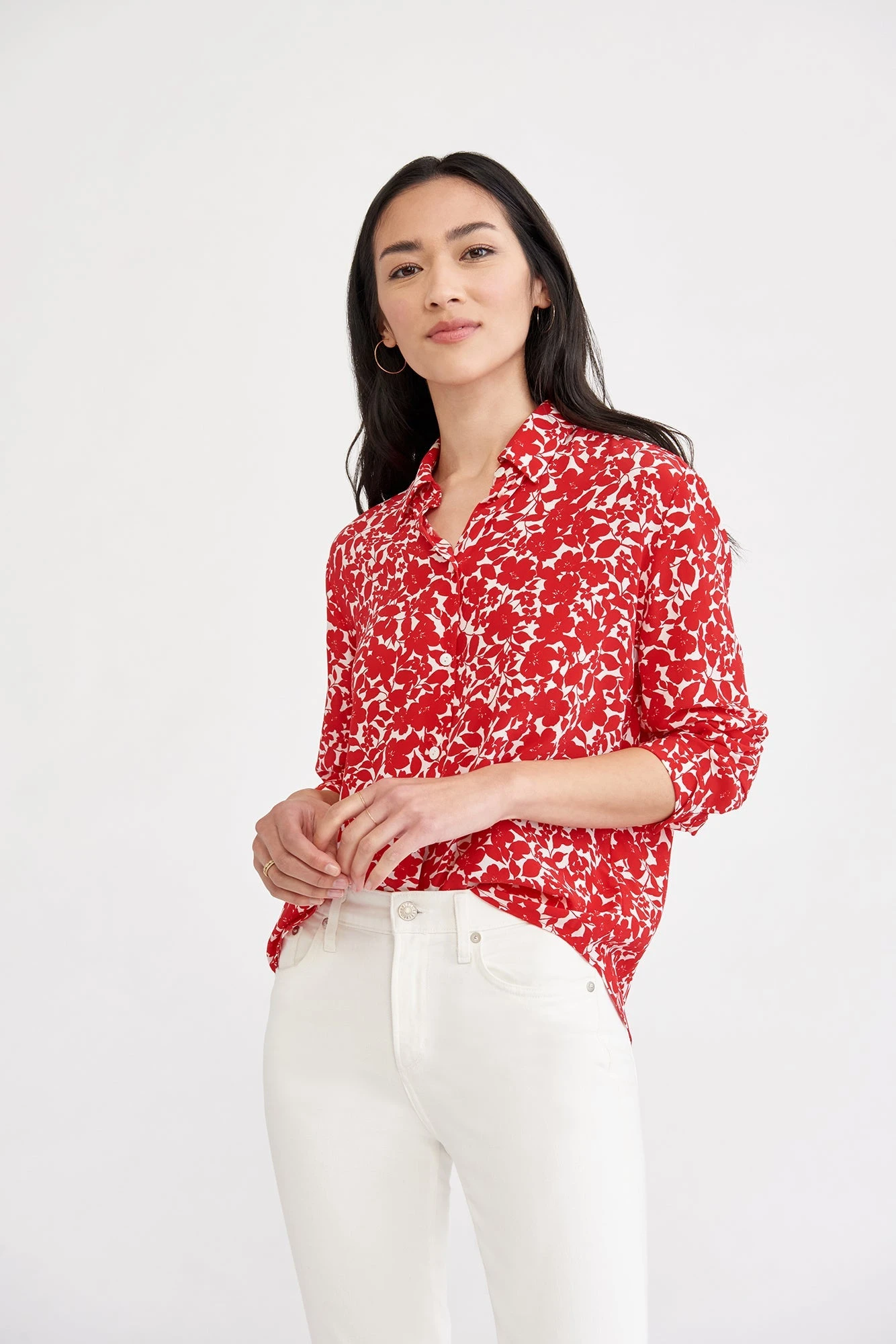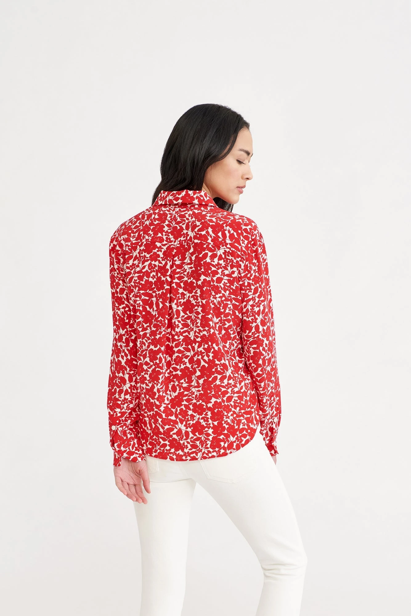 Long sleeve button-down blouse with a collar and easy, relaxed fit. Made in our finest silk, this is the perfect staple to have year-round.