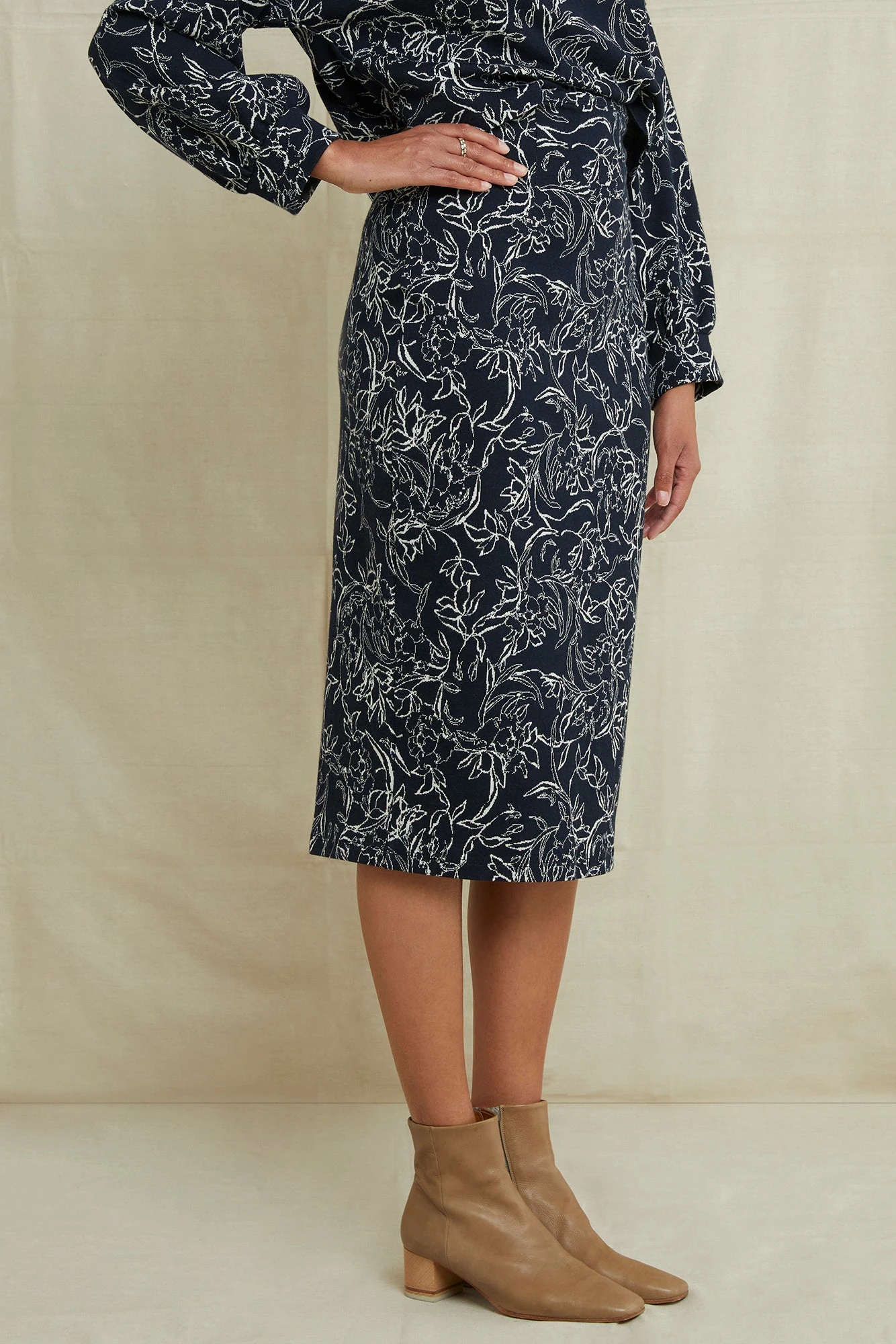 High-waisted pencil skirt with invisible side zipper. Pair with our Marion Top or your favorite tee tucked in.