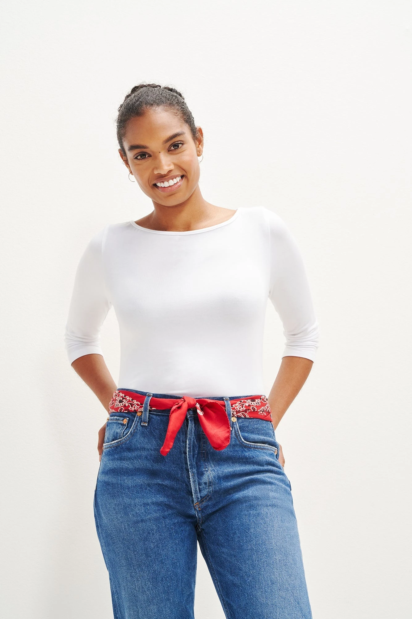 3/4 sleeve tee with a classic boat neckline and easy silhouette. This super soft and versatile tee is made from our signature Dream Knit.