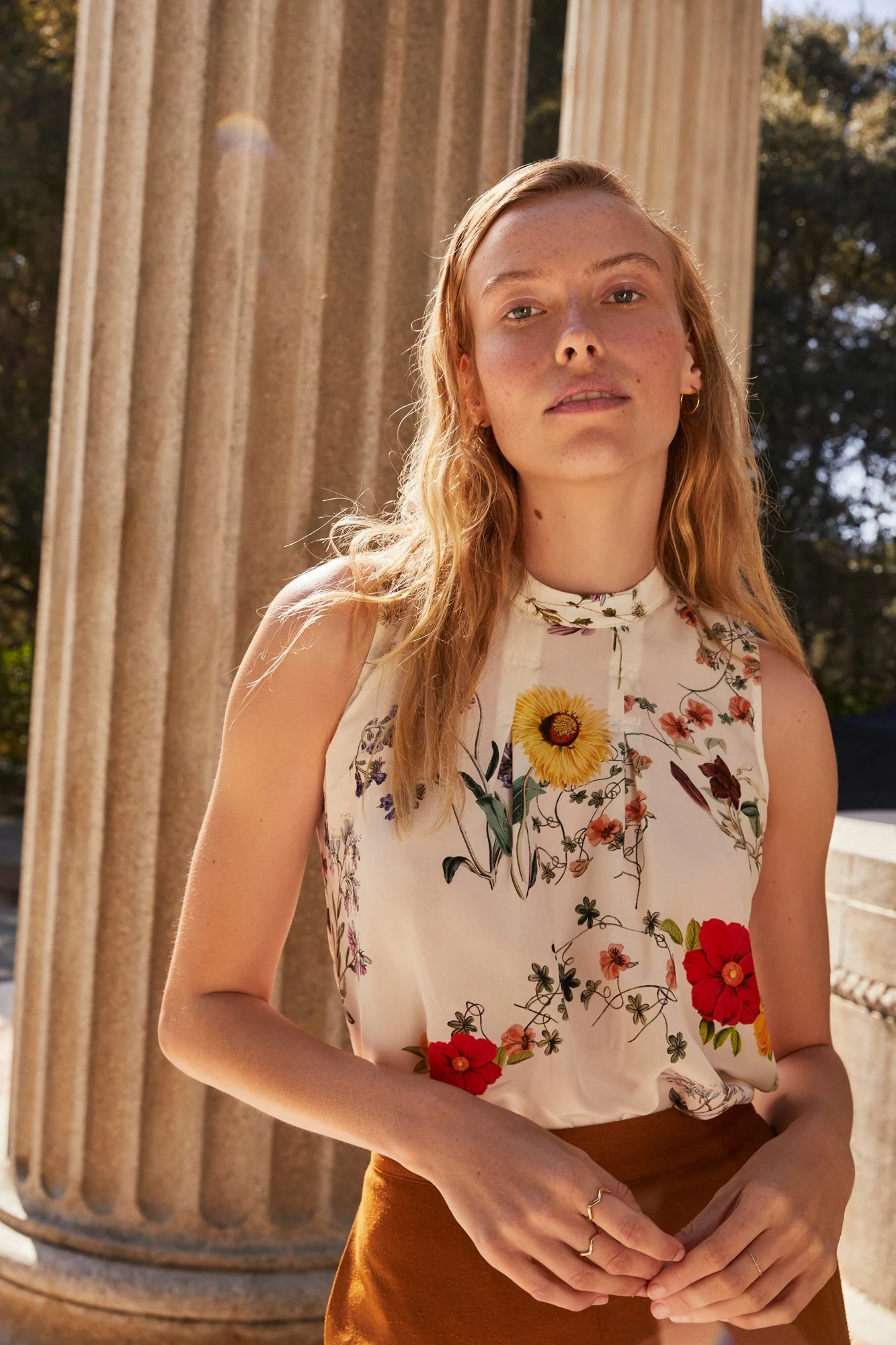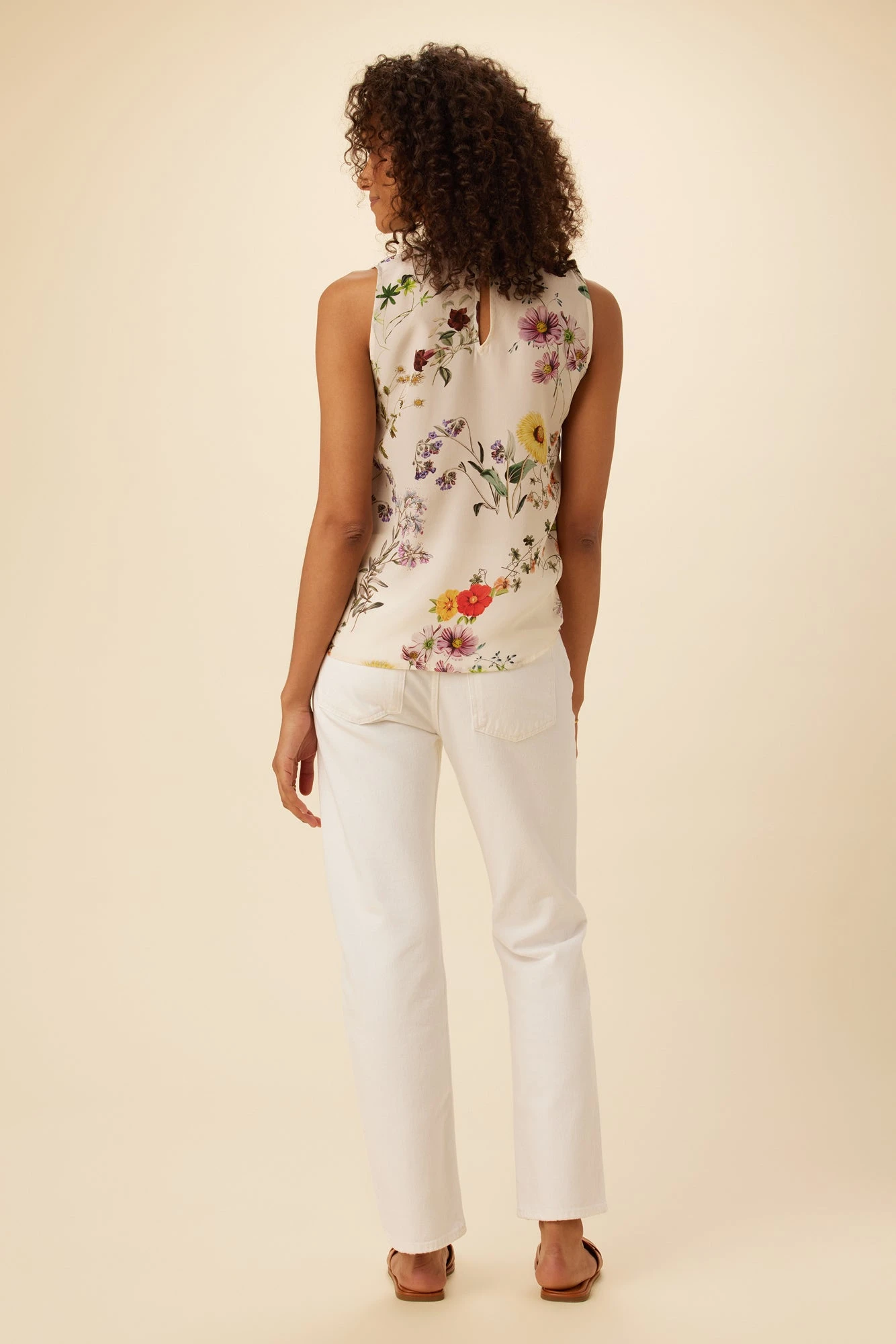 Relaxed fit, crewneck tank top with two box pleats at the neck. Made from our signature Washable Silk, this versatile piece can be worn with mid or high-rise pants, either tucked in or worn over.