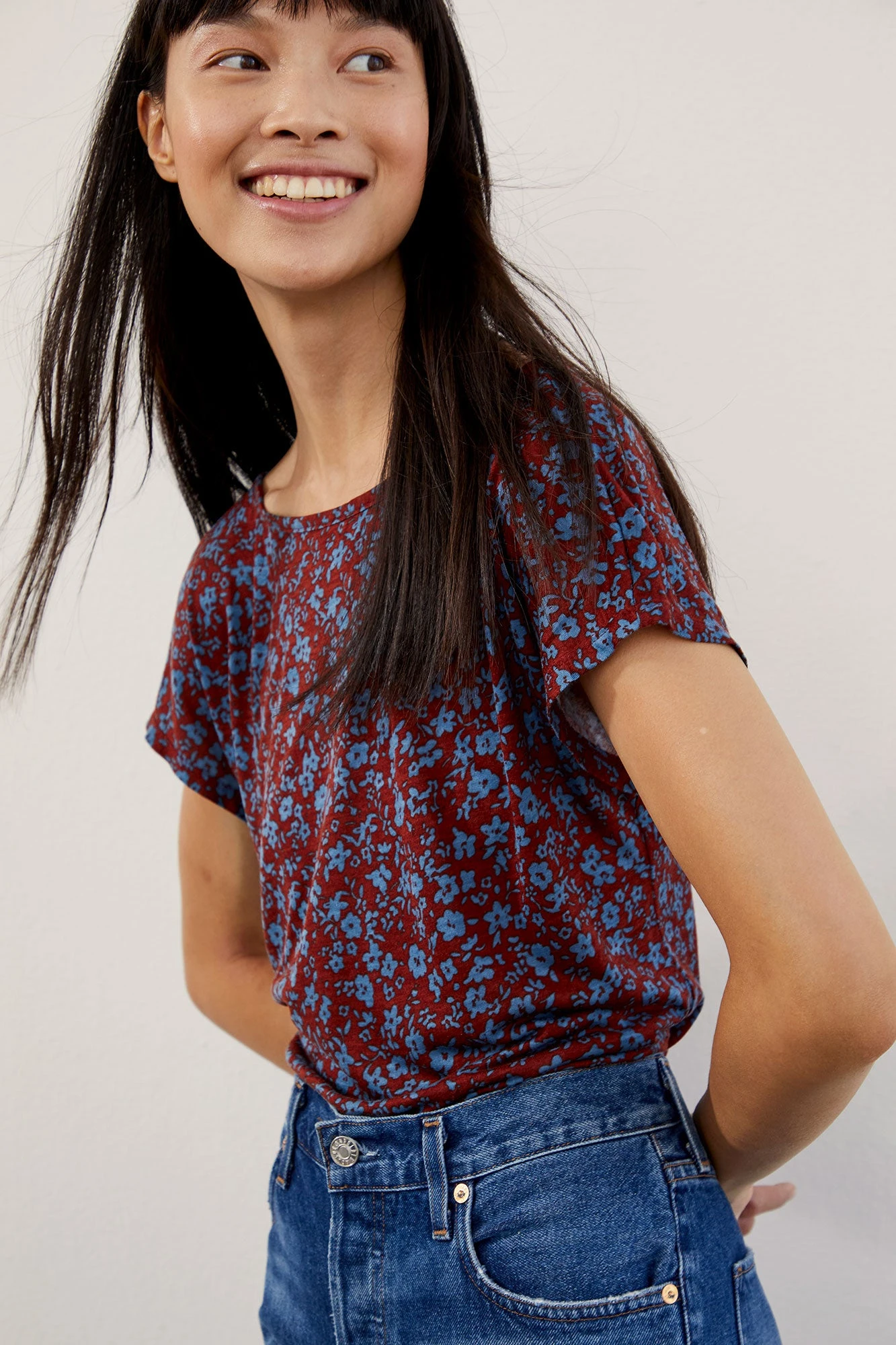 Short sleeve tee with an open neck and v-cut out at the back. Made entirely from Modal for a silky smooth and luxurious feel.