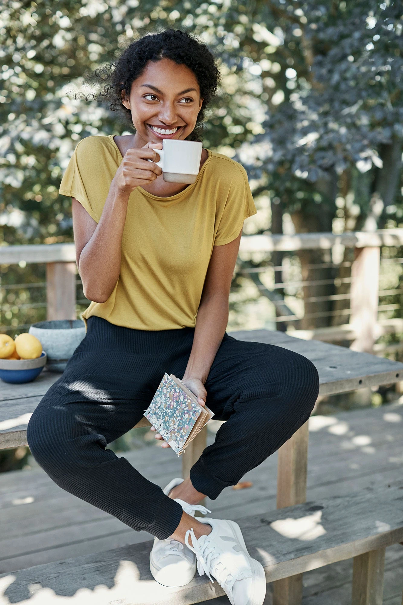 Short sleeve tee with an open neck and easy, relaxed fit. Made entirely from Modal for a light, airy, and silky smooth feel.