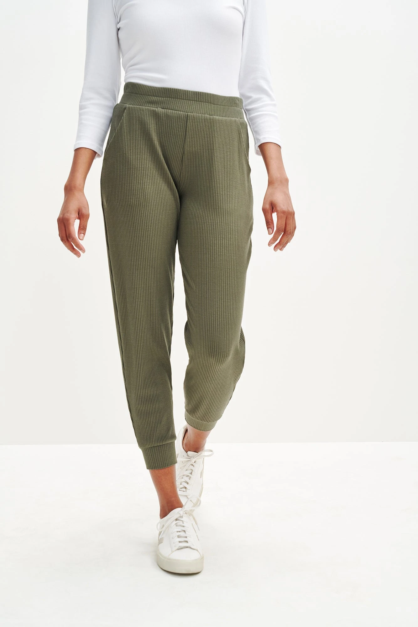 Ribbed jogger pants with a relaxed silhouette, stretch waist, and side seam pockets. Made in our softest signature Paris Rib that has the perfect amount of stretch and structure.