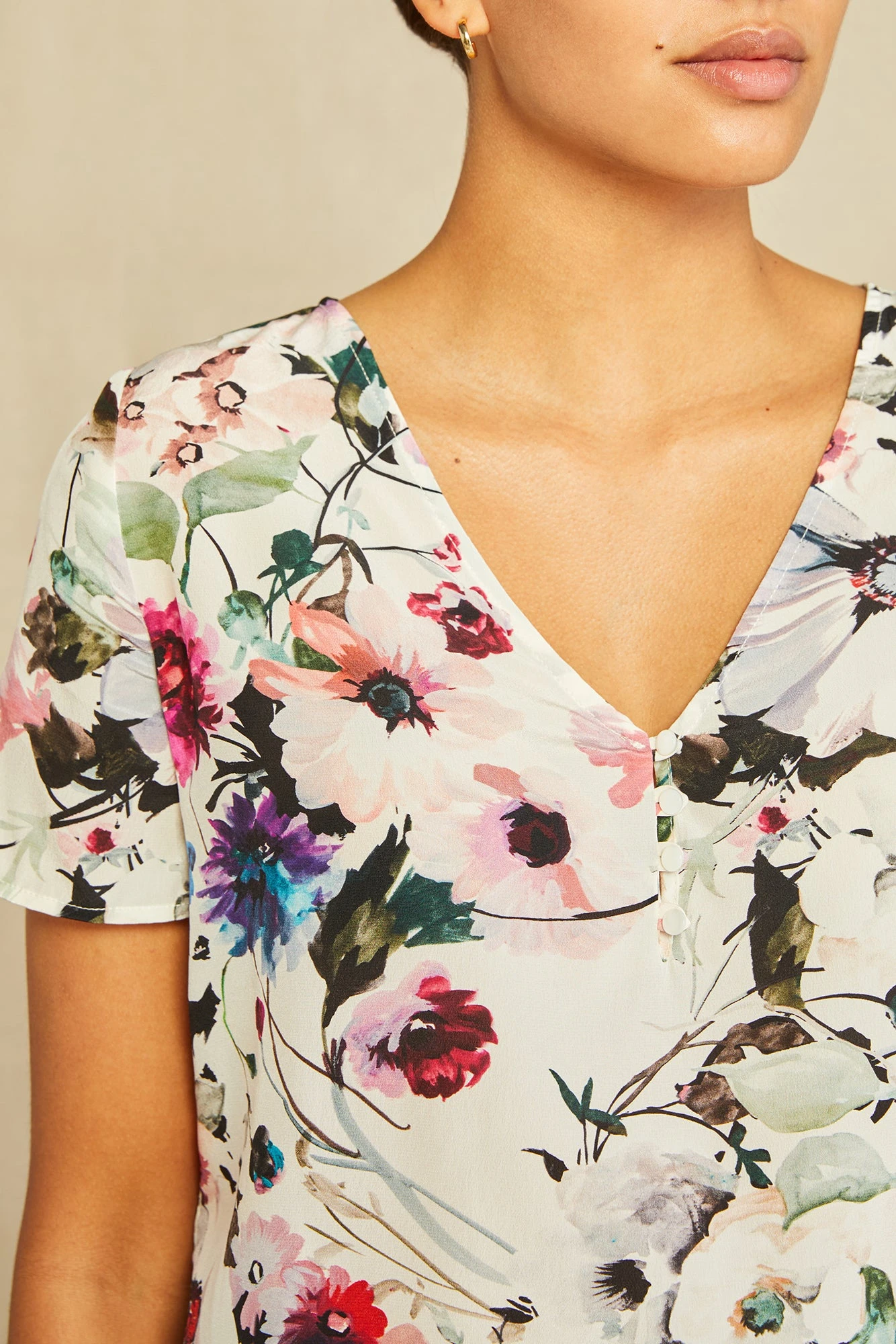 Short sleeve top with a v-neck and relaxed, cropped fit. Made from our luxurious Mulberry silk, this elevated basic is a must have for any wardrobe.
