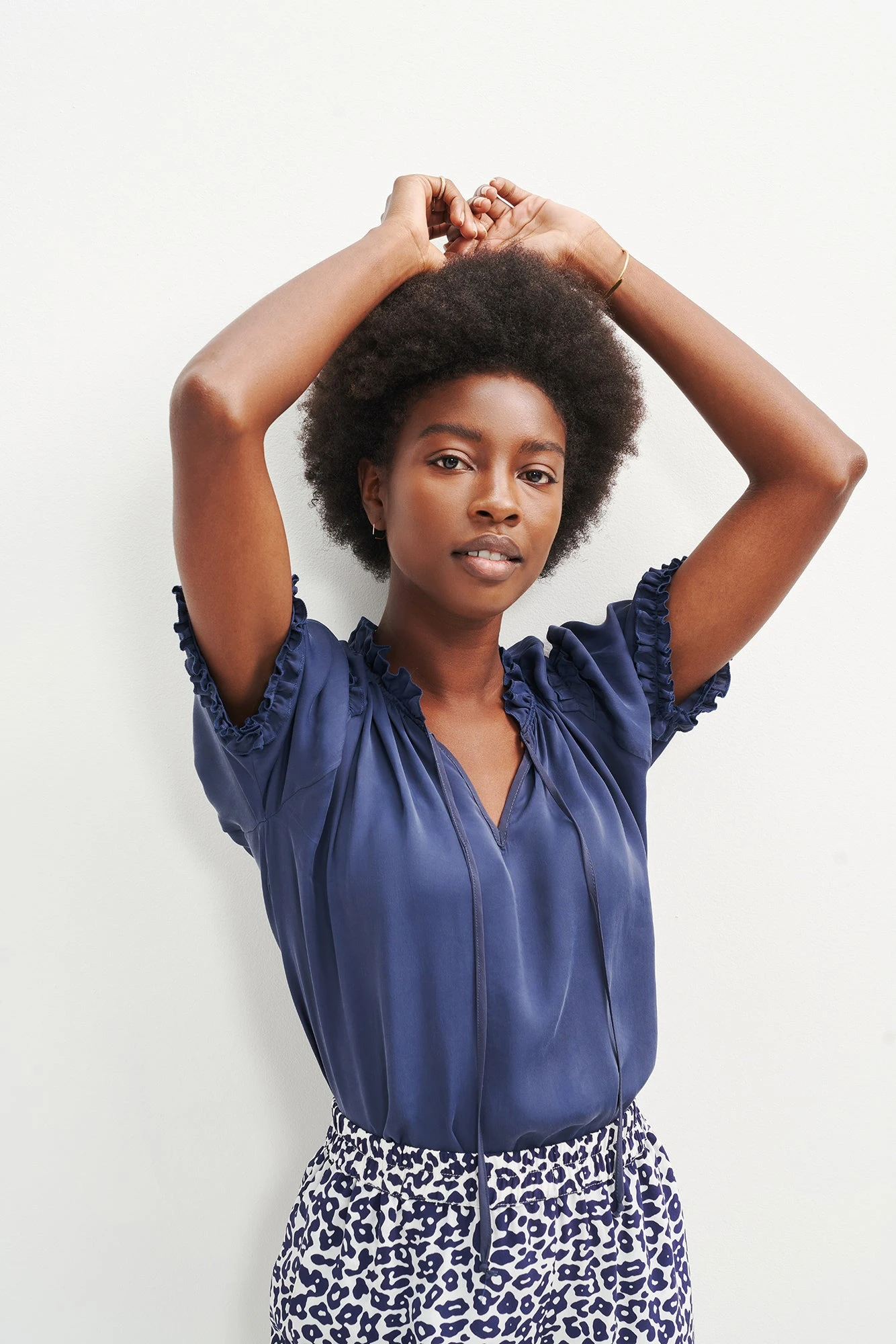 Short sleeve blouse with ruffle detailing and a keyhole opening at the neckline. Made in our softest Cottonseed Cupro, a lightweight and slightly sheer fabric that can be dressed up or down with ease.